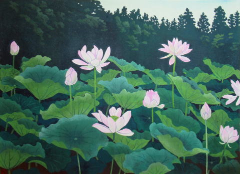 1年後、版画の下絵も完成に近づいた段階で、もう一度見たいと思って、一面咲いている蓮の花を心に描いて言って見ると、驚いたことに1本もありませんでした。