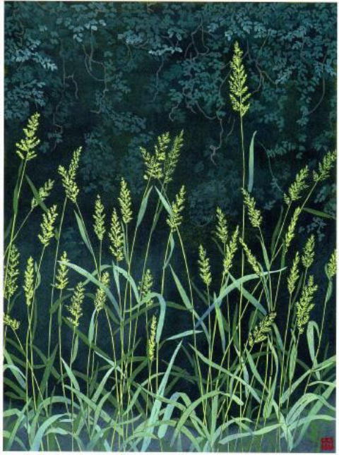 家事をしながら、毎年同じところで伸びて穂をつけて、風に揺れていて、いいなーと眺めていました。 その心魅かれる風情を描きたかった。