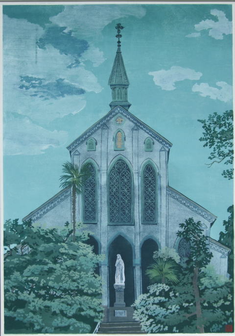 長崎の大浦天主堂の下から二時間くらい、写生をすることができた。